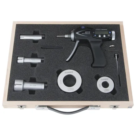 Fowler-Bowers BLUETOOTH XTH3 Holematic Pistol Grip Sets range of bore gages offer extended travel with fixed anvils. The pistol grip handle incorporates a constant measuring pressure to eliminate operator "feel."