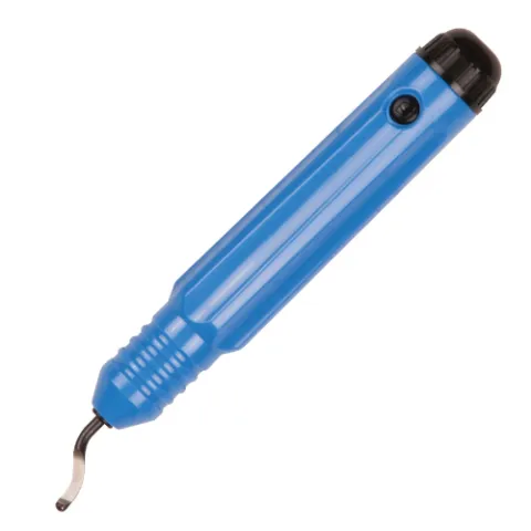 Unique rounded head blades for safe deburring of drilled and machined holes, end milled areas, tubing, backside of holes and an almost unlimited amount of uses