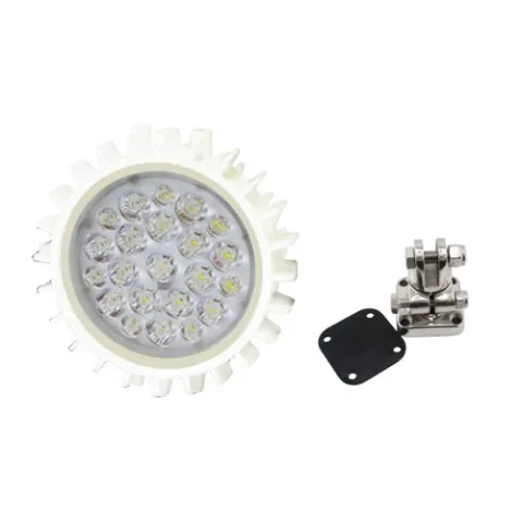 The lamphead has 22 ultra-bright white LEDs to provide specific light beam pattern. It operates at 12/24 volts DC, draw 5/2.5 amps, and generates 7,000 lumens of light. The lamphead weights less than 2-1/2 pounds and be powder coated. The LED scene light is for fire service use.