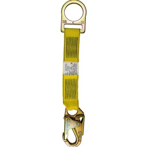 D-ring extension straps are an accessory to a fall protection harness. The strap is used to extend the back D-ring attachment point. The 1418 allows for a mechanical connection to the back D-ring by using a #74N snap hook.