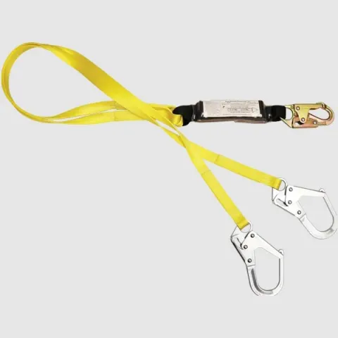 French Creek Production 442AN 6' Dual Leg Lanyard 1" Webbing 100% Tie Off Standard Snap Hook on Center and 1-3/4" Gated Steel Locking Rebar Snap