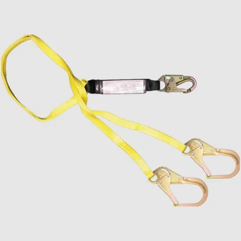 French Creek Production 444A 6' Dual Leg Lanyard 1" Webbing 100% Tie Off Standard Snap Hook on Center and 2-1/2" Gated Steel Locking Rebar Snap