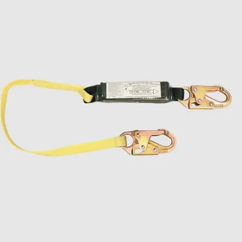 This web lanyard with pack style shock absorber limits fall arrest forces to 900 lbs. when tested to OSHA and ANSI standards.