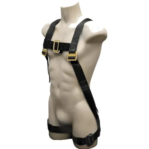 Kevlar Full Body Harness, pass-thru buckle legs, sub-pelvic strap, single back dorsal d-ring, 5 point adjustability.