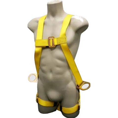 Full Body Harness, pass-thru buckle legs, sub-pelvic strap, single back dorsal d-ring, side d-rings, 3 point adjustability.