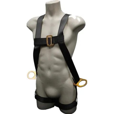 Full Body Harness, pass-thru buckle legs, sub-pelvic strap, single back dorsal d-ring, hip d-rings, 3 point adjustability, kevlar webbing.