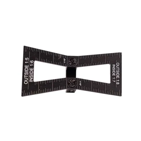 The Dovetail Marker Jig is designed specifically for precise and easy-to-make dovetail joints. With multiple slopes including 1:5, 1:6, 1:7, and 1:8, the dovetail marker allows for both hardwood and softwood cuts of various sizes. The tool also includes a 1/16" scale along both the outside and inside edges to ensure all measurements are made correctly. Its durable aluminum body provides a clean edge for straight lines every time.
