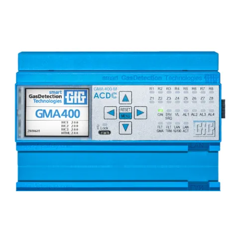 Applications in which combustible and toxic gases or the concentration of oxygen need to be monitored are getting more and more complex - and so do the requirements they have for gas detection systems. The performance and technical possibilities of the GMA400-MT contribute to the safety of people, facilities and the environment even in the most challenging conditions. A single GMA400-MT can monitor up to 128 transmitters or measuring channels as well as 32 virtual transmitters for calculated parameters or environmental influences. The controller features an integrated network interface for Modbus TCP integration as well as access via a web interface. Up to 128 relays can be added to its eight integrated ones. In addition to the large color display giving you an overview of the measured values directly on site, decentralized display modules and large displays can be added for further visualization.
