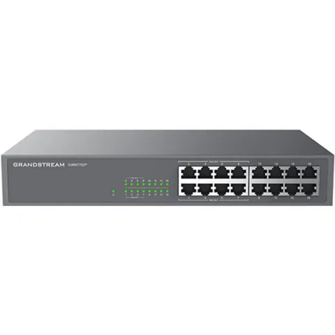 The GWN7702P Unmanaged Network Switch by Grandstream delivers high-performance connectivity with 16 Gigabit Ethernet ports, including 8 PoE+ ports for efficient power delivery. Designed for simplicity and reliability, this switch is ideal for small to medium networks.