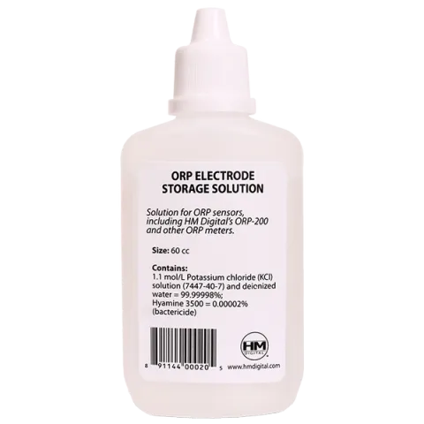 ORP storage solution for HM Digital's ORP-200 as well as other brands of ORP meters. Always make sure your sensor is kept in an electrode storage solution. If dry, refill the ORP meter cap with the ORP-STOR storage solution. The sponge should be moist (not soaking wet).