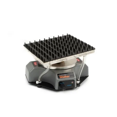 The IBI Scientific Belly Button® Shaker with Tube Mat is a space-efficient version of The Belly Dancer® shaker, designed to meet the needs of modern laboratories with limited bench space. With a compact 8" x 8" footprint and a height of only 5 inches, this orbital shaker provides a wide range of agitation conditions through its adjustable speed and platform pitch controls. The platform's flexible anchoring system combines gentle rocking with orbital shaking, making it an excellent tool for various applications such as cell culture, tissue culture, and membrane rinsing. Capable of holding up to 5 lbs, the Belly Button® Shaker operates quietly and is compatible with incubators and refrigerators, making it a versatile choice for a variety of laboratory settings.
