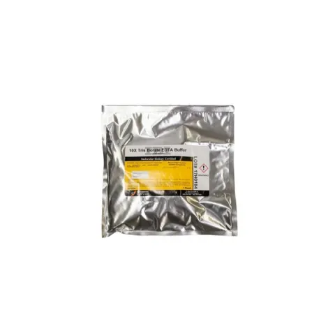 Electrophoresis buffer powder contains Tris, Boric Acid, and EDTA. The 10 X TBE Buffer Ready Pouch makes 1 L of 10 X TBE Buffer Solution. Add ddi water until a pH level of 8.1 to 8.5 has been reached.