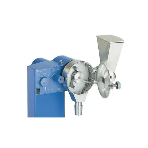 For crushing brittle, hard materials such as minerals, building materials up to Mohs hardness 6. Before being discharged, the ground material passes through a sieve. This sieve is interchangeable and available in different hole sizes (not incl. with delivery). The ground material can then be collected using an NS 29 standard ground vessel.