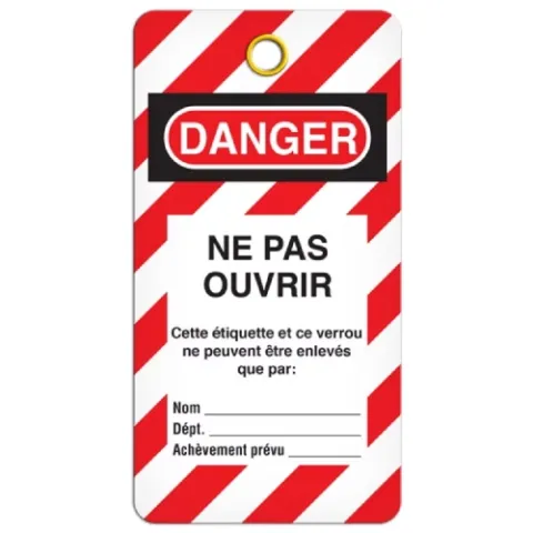 These tags are used to indicate that energy isolating devices are in use and the equipment being controlled may not be operated until the Lock Out / Tag Out Device is removed.