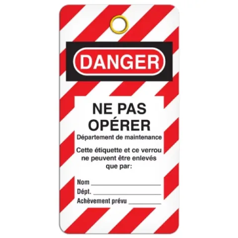 INCOM 33014 Lockout Tag "Danger Ne Pas Operer", Pack of 25 pcs