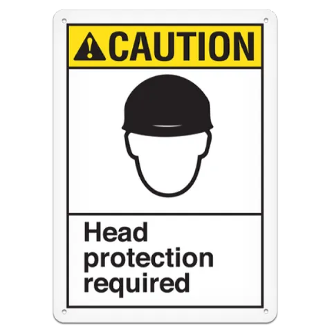 CAUTION (ANSI) Safety Sign: Head Protection Required, Rigid HDPE Plastic