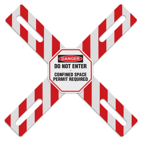 Increase visibility and prevent unauthorized entry with the Confined Space OSHA X-Barrier.This highly visible barrier system blocks access to confined spaces with a bold red-and-white crossbuck design and a prominent octagonal warning panel that can be seen from a distance. Built from impact-resistant HDPE, it delivers long-lasting performance in both indoor and outdoor environments while folding flat for easy transport and storage.