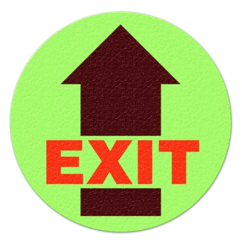 Enhance your emergency exit routing with our Photoluminescent Glow in the Dark floor signs. These signs combine a thick textured vinyl for durability and slip resistance, to our Glow in the Dark material for visibility in low light conditions. The clear graphics are easily understood and are highly visible. Our luminous signs will maintain visibility to the light adjusted eye for up to 6-hours. 17" maximum diameter.