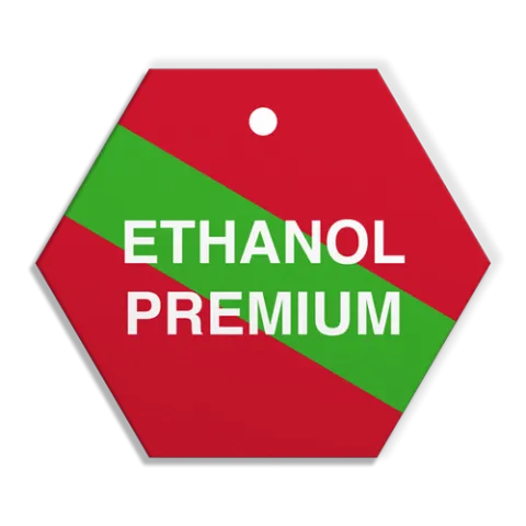 CPPI "Ethanol Premium" plastic fuel type identification plastic tags are commonly displayed on fuel tank trailers, and vehicles to help both identify products and prevent mixing. Easily identify different categories of petroleum such as aviation products, middle distillates, heavy fuel oils, lubricating oils and solvents by utilizing recognizable shapes. Made from a thick 0.055" high-density polyethylene plastic 2.56" diameter hexagon (6.5cm) tag with a 0.3" (7.5mm) drilled hole. Printed on both sides and sold 250 per package.