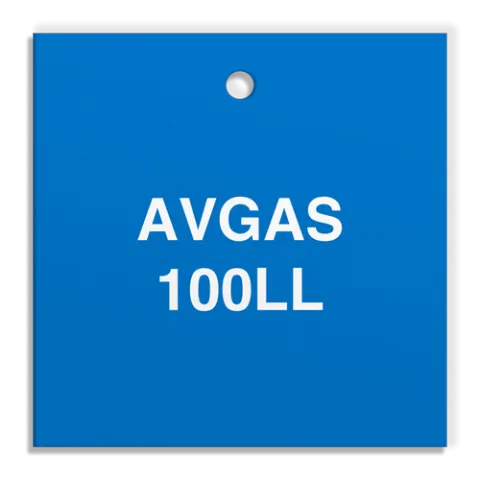 CPPI "AVGAS 100LL" plastic fuel type identification plastic tags are commonly displayed on fuel tank trailers, and vehicles to help both identify products and prevent mixing. Easily identify different categories of petroleum such as aviation products, middle distillates, heavy fuel oils, lubricating oils and solvents by utilizing recognizable shapes. Made from a thick 0.055" high-density polyethylene plastic 2.36" square (6.0cm) tag with a 0.3" (7.5mm) drilled hole. Printed on both sides and sold 250 per package.