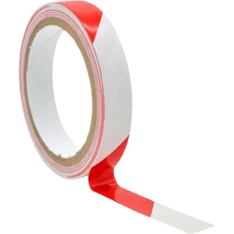 • Red / White laminated hazard warning stripe tape is constructed by over laminating vinyl film and using a rubber adhesive system, these tapes will adhere to most any clean, dry surface.