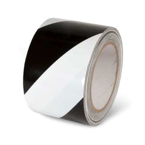 Black/White laminated hazard warning stripe tape is constructed by over laminating vinyl film and using a rubber adhesive system, these tapes will adhere to most any clean, dry surface. The over lamination improves the ability of the tape to withstand heavy abrasion. The gloss surface also adds a premium "finished" look to your application. Great product for use on floors, walls, pipes and equipment.