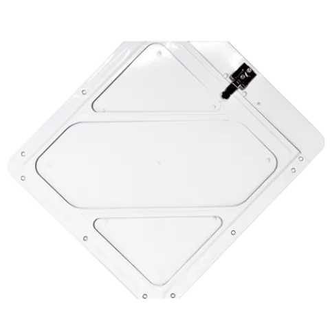 These placard holders are the same design as our PH223 series, but have the corners "clipped" for use on roll up doors. Measuring 14.875" across from clipped corner to clipped corner. Manufactured out of high quality aluminum with a stainless steel clip to ensure longevity even in the worst conditions, these placard holders have 10 pre-drilled mounting holes for ease of installation. Holder has a formed ramp at the clip to guide placards easily over the clip during removal. Back plate has several raised bumps that keep plastic placards from becoming stuck in the holder during winter weather.