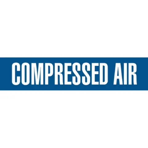 Durable, self-adhesive VynMark COMPRESSED AIR Blue / White Printed pipe markers for fast, compliant identification in industrial and commercial facilities.PM-Series Printed Self-Adhesive VynMark Pipe Identification Markers are manufactured from outdoor-grade flexible vinyl and finished with a clear protective coating that resists fading, abrasion, grease, dust, and moisture. Each marker features a high-tack acrylic adhesive with an easy peel-off liner, ensuring smooth, reliable installation on clean, smooth pipe surfaces. These markers meet ANSI / ASME and IIAR pipe identification requirements. Use with INCOM's Pipe Marker Adhesive Directional Flow Arrows on a roll, available separately.
