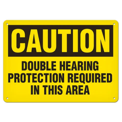 Improve your workplace safety with the use of OSHA style Caution - Double Hearing Protection Required In This Area safety signs available in an assortment of materials including adhesive, plastic and aluminum with several sizes to meet your specific safety identification requirements.