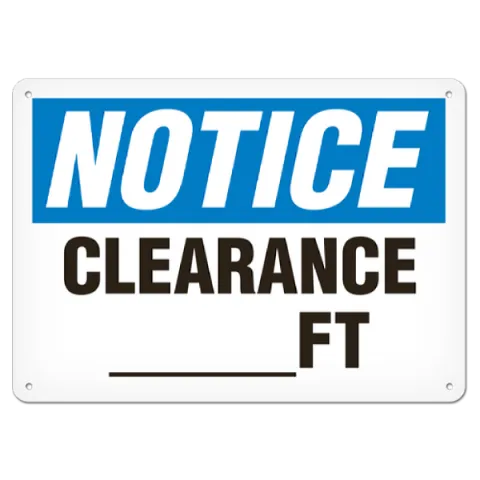 Improve your workplace safety with the use of OSHA style Notice - Clearance __ FT safety signs available in an assortment of materials including adhesive, plastic and aluminum with several sizes to meet your specific safety identification requirements.