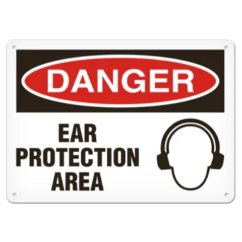 Improve your workplace safety with the use of OSHA style Danger - Ear Protection Area safety signs available in an assortment of materials including adhesive VynMark®, rigid HDPE plastic, aluminum and aluminum + UV lamination for extended long-term outdoor applications with several sizes to meet your specific safety identification requirements.