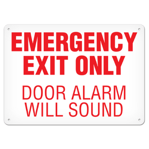 Emergency Exit Only Door Alarm Will Sound Sign, 14" x 20", Adhesive VynMark