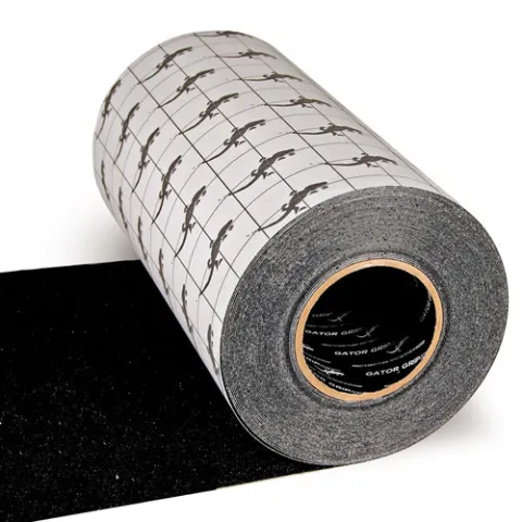 Heavy foot traffic and dirty work environments can clog up standard grit products with mud, oil, sawdust, liquids, and grease. Our Heavy Duty Gator Grip® offers a very deeply textured (36-grit) surface to continue to offer non-slip protection, even in the dirtiest conditions. The tape can even be spray painted over and still maintain an anti-slip surface.Gator Grip® (36-grit) tape is water-proof for both indoor and outdoor applications and offers excellent hydrocarbon resistance. This tape has a very aggressive grit surface and is recommended for areas with heavy debris only.