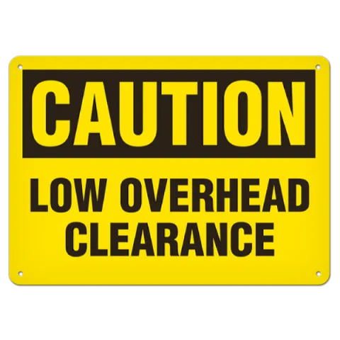 Improve your workplace safety with the use of OSHA style Caution - Low Overhead Clearance safety signs available in an assortment of materials including adhesive, plastic and aluminum with several sizes to meet your specific safety identification requirements.