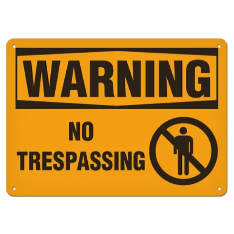 Improve your workplace safety with the use of OSHA style Warning - No Trespassing safety signs available in an assortment of materials including adhesive VynMark®, rigid HDPE plastic, aluminum and aluminum + UV lamination for extended long-term outdoor applications with several sizes to meet your specific safety identification requirements.