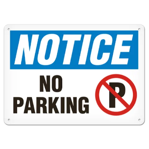 Improve your workplace safety with the use of OSHA style Notice - No Parking safety signs available in an assortment of materials including adhesive, plastic and aluminum with several sizes to meet your specific safety identification requirements.