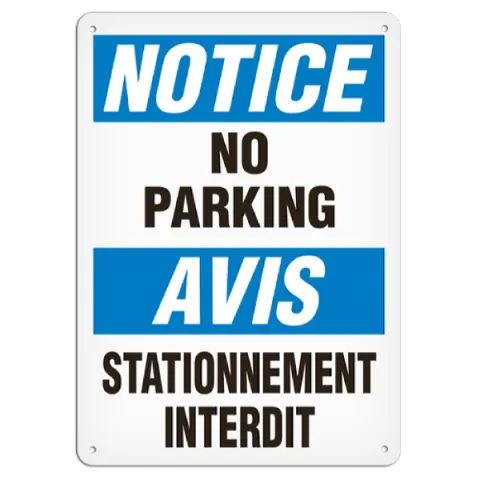 NOTICE (Bilingual) Safety Sign: No Parking, 10" x 14", Rigid HDPE Plastic