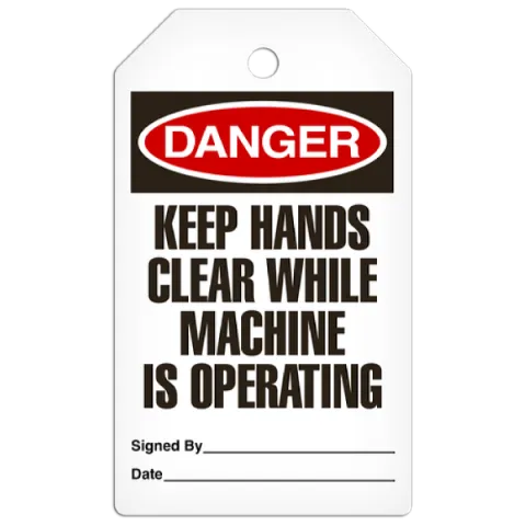 DANGER Tag: Keep Hands Clear While Machine Is Operating, 3/8" Plain Hole