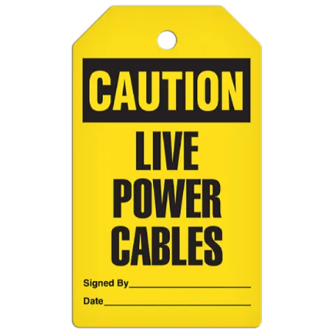 CAUTION Tag: Live Power Cables, 3/8" Metal Grommet