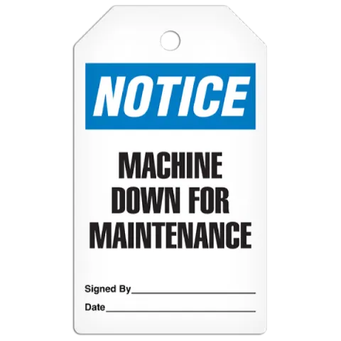 NOTICE Tag: Machine Down For Maintenance, 3/8" Metal Grommet