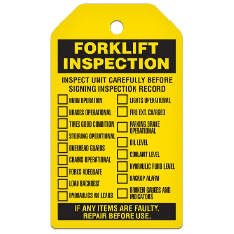 Inspection Tag: Forklift Daily Inspection Checklist, 3/8" Plain Hole