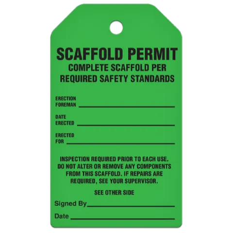 Scaffold Tag: Scaffold Permit, 3/8" Plain Hole