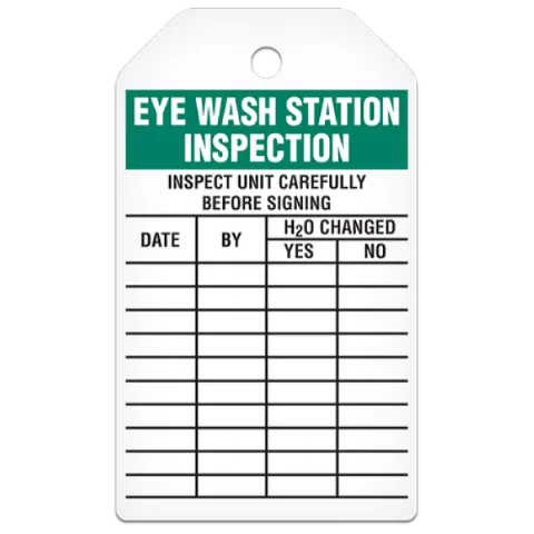 Inspection Tag: Eye Wash Station Date Inspection Record, 3/8" Plain Hole