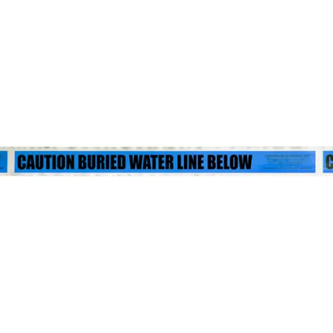 Buried Water Line Below PrimeGuard® detectable underground tape consist of a 5.0 mil thickness foil and poly laminated structure and are designed to detect, locate, identify, and protect buried utility lines for gas, telecommunication, and electrical markets. The PrimeGuard® warning legends are printed black text on red APWA color-coded background on an aluminum foil core with lamination on both sides for durability. Always consult regulatory guidelines for the proper use of underground warning marks.