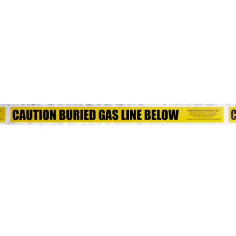Buried Gas Line Below PrimeGuard® detectable underground tape consist of a 5.0 mil thickness foil and poly laminated structure and are designed to detect, locate, identify, and protect buried utility lines for gas, telecommunication, and electrical markets. The PrimeGuard® warning legends are printed black text on red APWA color-coded background on an aluminum foil core with lamination on both sides for durability. Always consult regulatory guidelines for the proper use of underground warning marks.