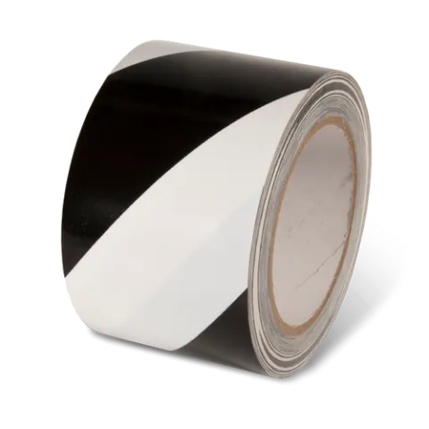 Black/White hazard stripe conformable vinyl tape is commonly used in aisle marking and pipe color banding applications. These tapes are made from a durable PVC film with a rubber adhesive system that will adhere to most any clean, dry surface. Tapes are matte, smooth and conformable which is great for marking hazards on floors, walls and equipment. Used in aisle demarcation, color coding and pipe marking applications. All tapes offer excellent durability and chemical resistance.