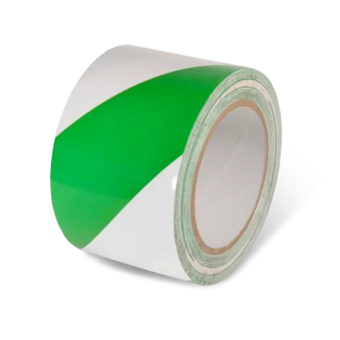Green/White hazard stripe conformable vinyl tape is commonly used in aisle marking and pipe color banding applications. These tapes are made from a durable PVC film with a rubber adhesive system that will adhere to most any clean, dry surface. Tapes are matte, smooth and conformable which is great for marking hazards on floors, walls and equipment. Used in aisle demarcation, color coding and pipe marking applications. All tapes offer excellent durability and chemical resistance.