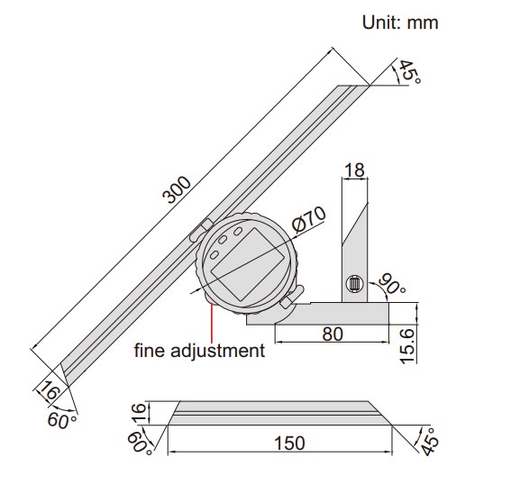 Insize 2172-360A Digital Protractor, 0-360 deg