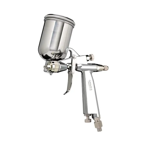 When airbrushing requires more coverage, consider the Iwata G-Series airbrush gun. It sprays with a fine atomization and air pressure typical of an airbrush, covering larger spray areas. This version of the Iwata G6 series side-feed airbrush gun comes with a 130ml side-feed fluid container with lid.