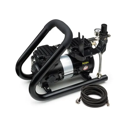Iwata Power Jet Plus Tubular airbrush compressor is a power-enhanced air compressor with low to high output for an adjustable working pressure of 1-60 PSI. It is oil-free and low maintenance.